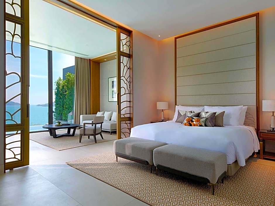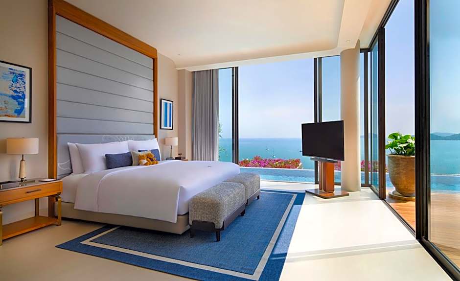 The 360 sqm, 2-story villa is architecturally designed to maximize social and private spaces. The upper level features two bedrooms and the third bedroom is on the lower level. Each bedroom features a luxurious king size bed and private en suite with twin spa baths. The 3 x 30 ft private infinity pool, expansive deck with sun loungers is surrounded by outstanding ocean views. A 24-hour personal butler is on hand to assist with all guest needs, including curating memorable in-villa private dining, floating breakfasts, spa, wellness, and fitness experiences.